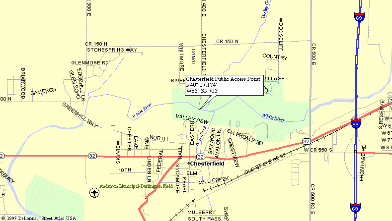Map To East Fork Public Access Boat Launch Points On White River In Indiana